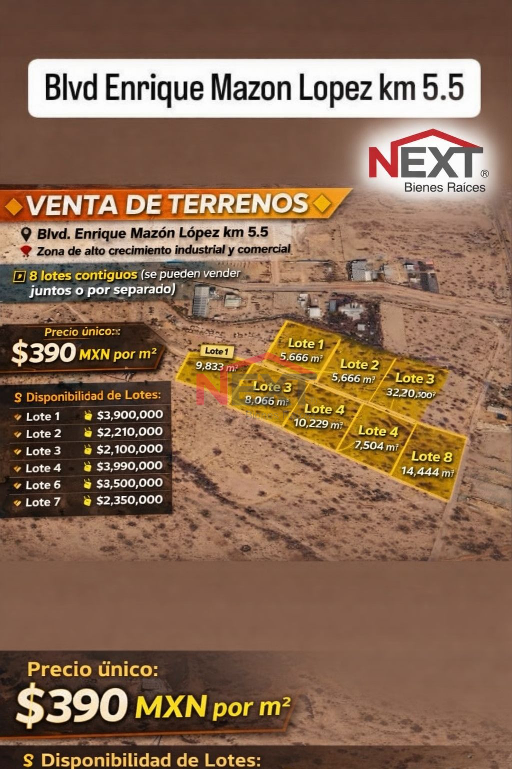 TERRENO VENTA SOBRE ENRIQUE MAZON LOPEZ KM 5.5