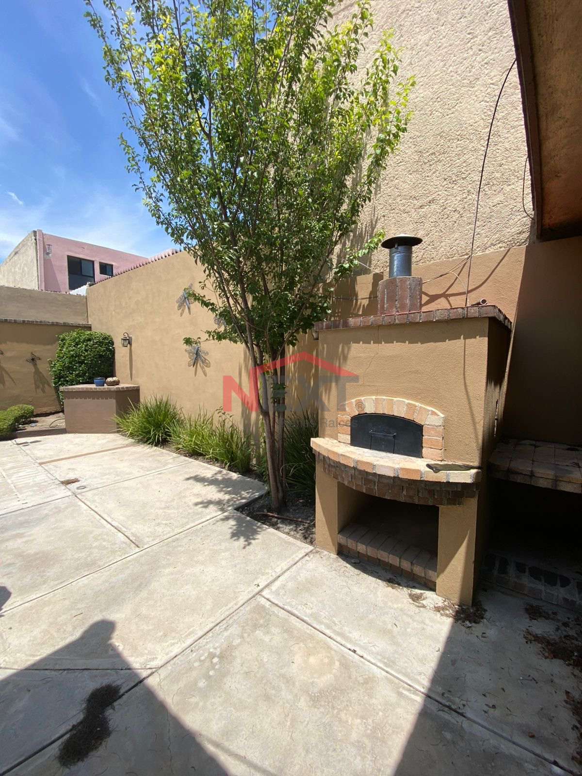 - Jardín frontal y asador de ladrillo
